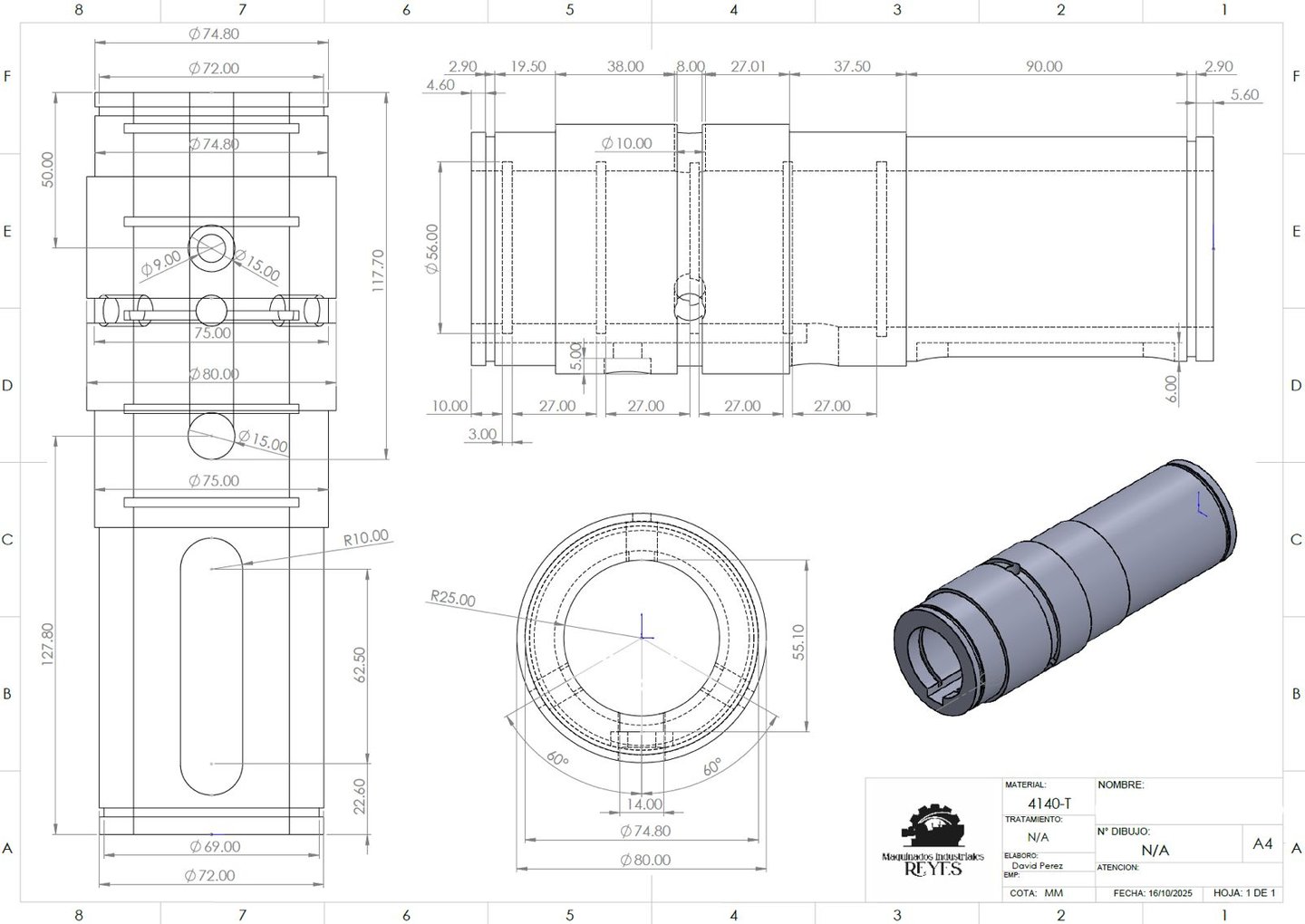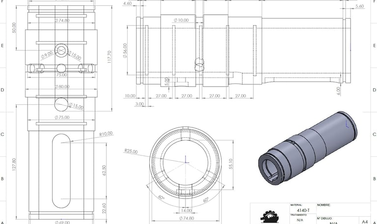 En caso de que no disponga de los planos de la pieza, también ofrecemos la opción de trabajar según la muestra. Realizamos el diseño de la pieza y elaboramos el acotado necesario para llevar a cabo el trabajo.